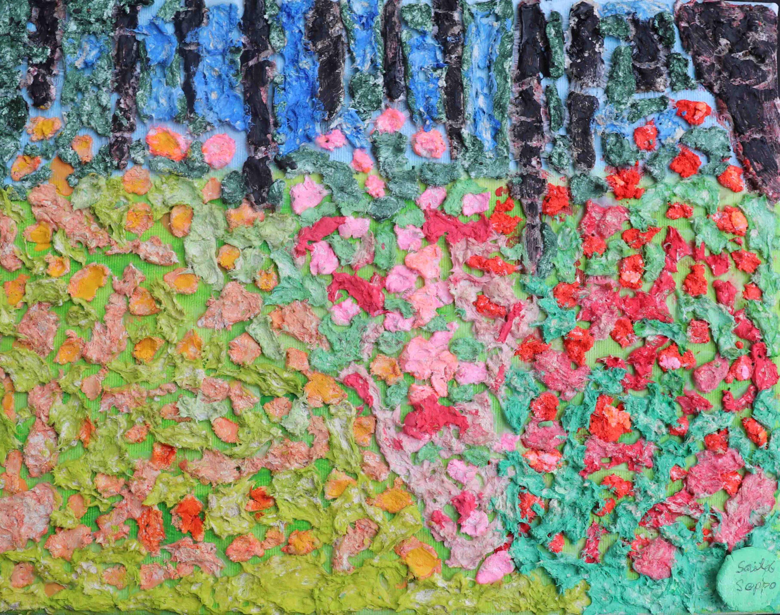 Flower Park, 2024 – Sisusavi and Pigments on Canvas, 27 × 35 cm