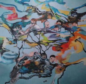 The spark for this painting came when I visited to view the Aalto EE art collections. The inspiration was Maiju Salmenkivi's work In between. Picture below.